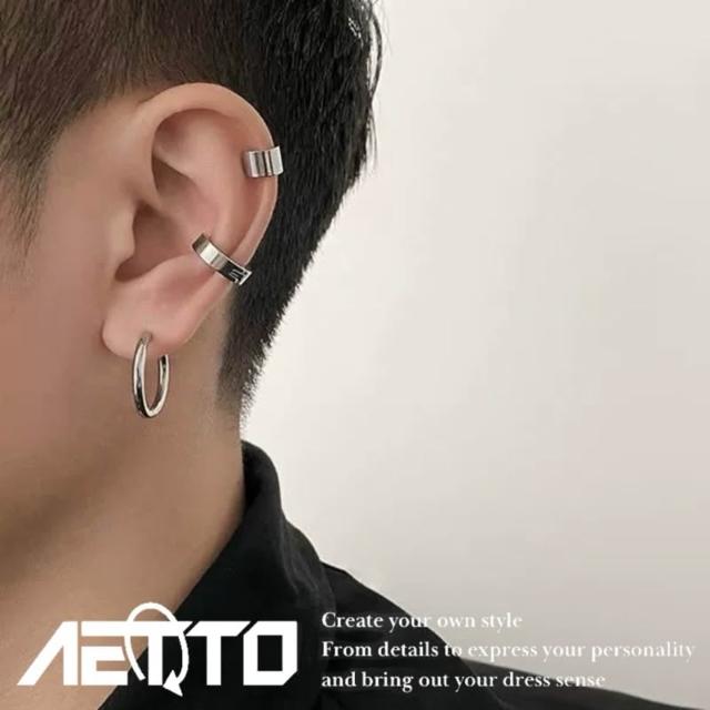 𝑨𝑬𝑻𝑻𝑶 光面耳夾三件套 黑銀兩色 簡約 百搭 醫療鋼 耳環 耳環組 無耳洞可戴 耳夾 耳骨夾 男生耳環 女生耳環