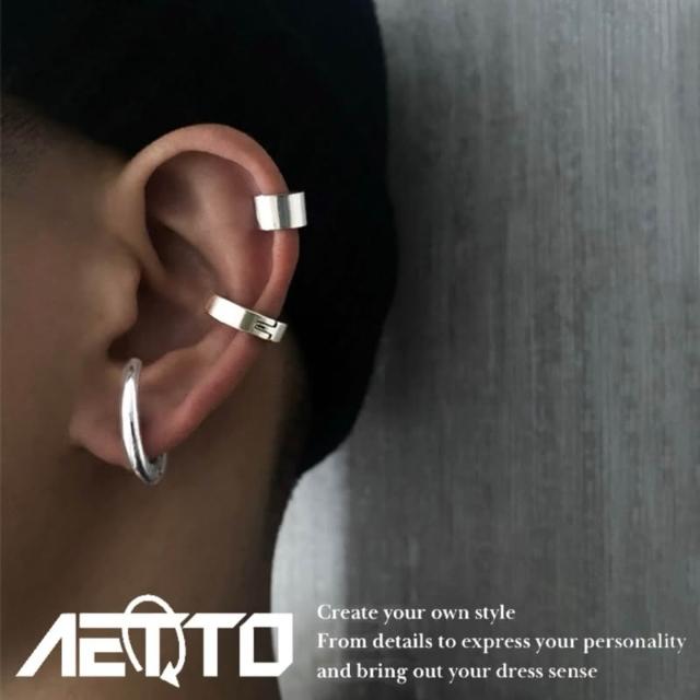 𝑨𝑬𝑻𝑻𝑶 光面耳夾三件套 黑銀兩色 簡約 百搭 醫療鋼 耳環 耳環組 無耳洞可戴 耳夾 耳骨夾 男生耳環 女生耳環