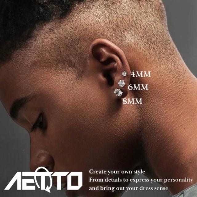 𝑨𝑬𝑻𝑻𝑶 六爪閃鑽耳環 最高等級 莫桑鑽 嘻哈 耳環 耳針 磁吸款 無耳洞可戴 S925 純銀耳環 男生耳環 女生耳環