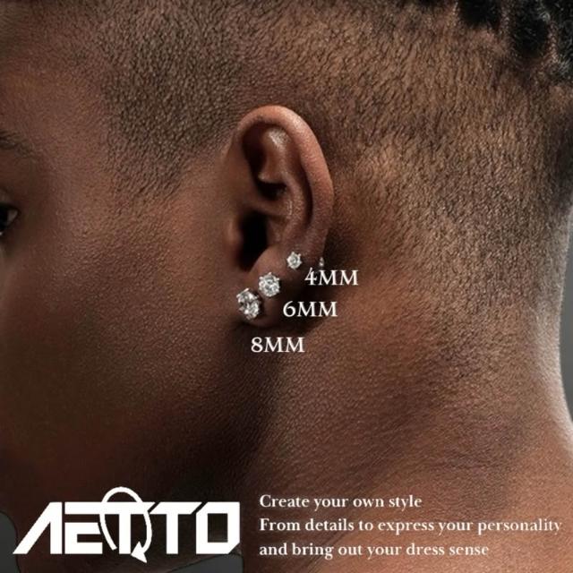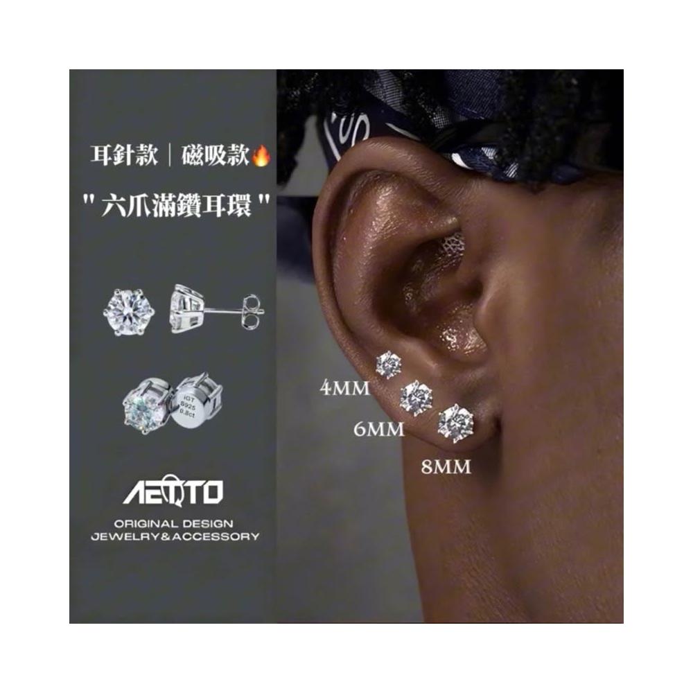 𝑨𝑬𝑻𝑻𝑶 六爪閃鑽耳環 最高等級 莫桑鑽 嘻哈 耳環 耳針 磁吸款 無耳洞可戴 S925 純銀耳環 男生耳環 女生耳環