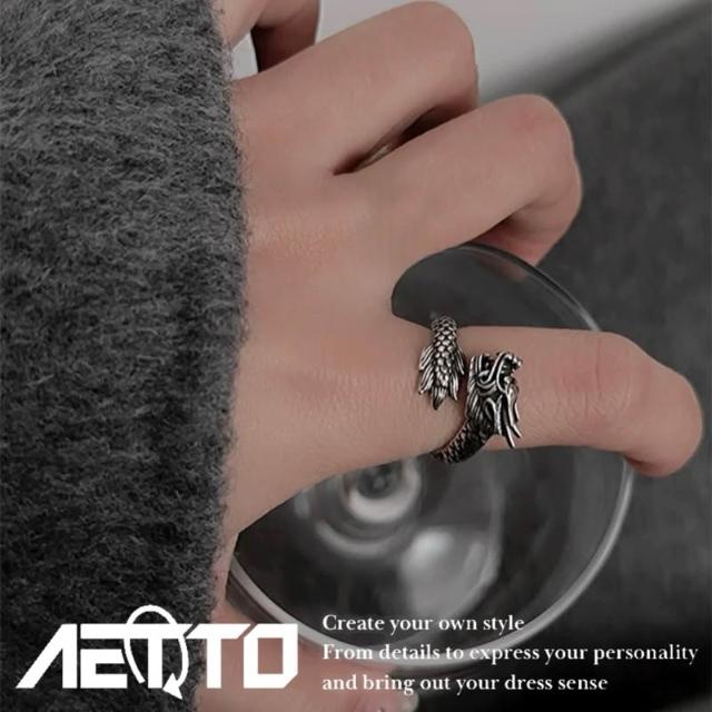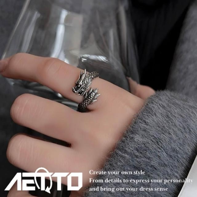 𝑨𝑬𝑻𝑻𝑶 復古盤龍戒指 設計款 立體感 開口可調節 龍形戒指 復古戒指 S925 純銀戒指 戒指 男生戒指 女生戒指