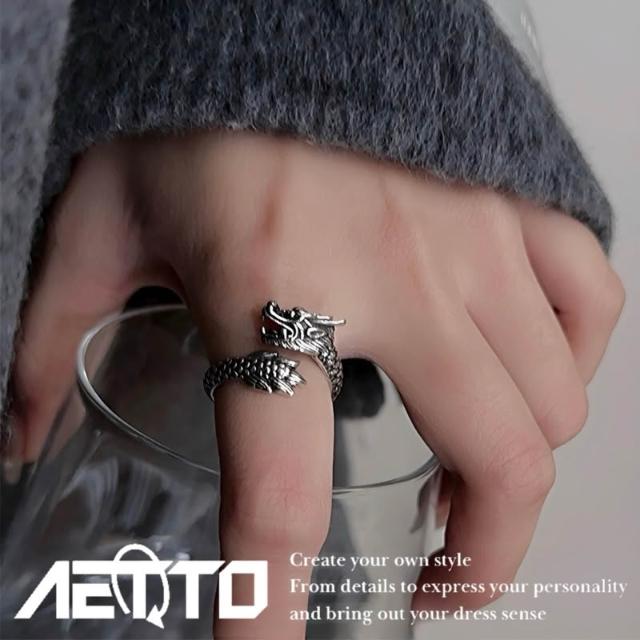 𝑨𝑬𝑻𝑻𝑶 復古盤龍戒指 設計款 立體感 開口可調節 龍形戒指 復古戒指 S925 純銀戒指 戒指 男生戒指 女生戒指