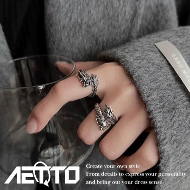 𝑨𝑬𝑻𝑻𝑶 復古盤龍戒指 設計款 立體感 開口可調節 龍形戒指 復古戒指 S925 純銀戒指 戒指 男生戒指 女生戒指