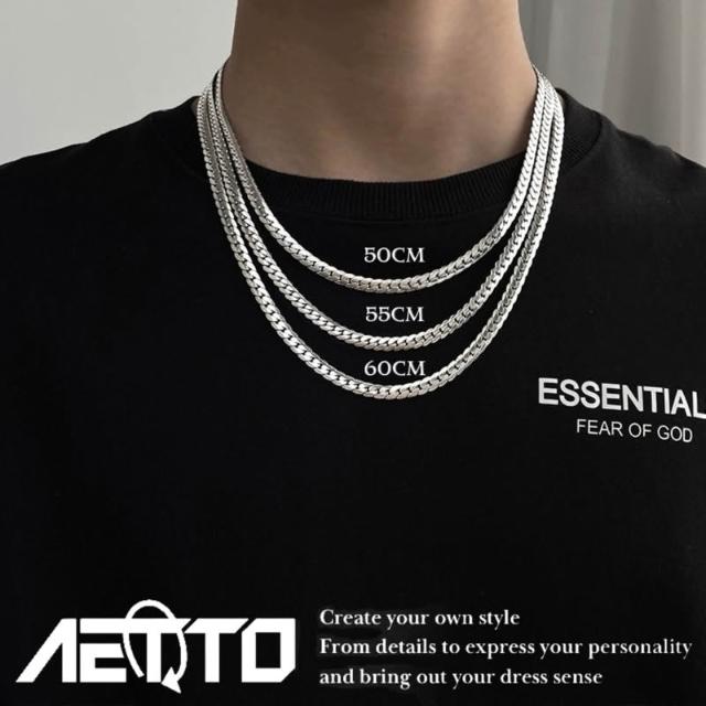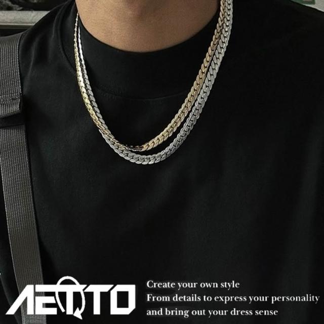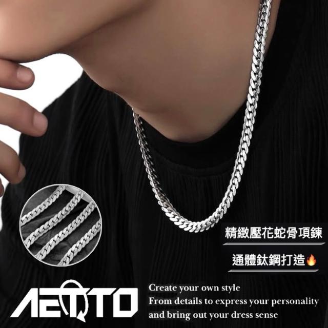 𝑨𝑬𝑻𝑻𝑶 精緻壓花蛇骨項鍊 金銀兩色 百搭款 鈦鋼 蛇骨項鍊 蛇骨鍊 古巴項鍊 歐美街頭 男生項鍊 女生項鍊 項鍊
