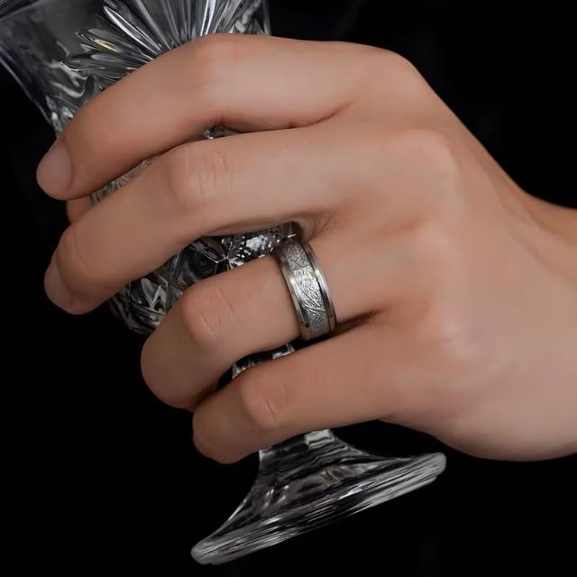 𝑨𝑬𝑻𝑻𝑶 樹葉霧淞紋戒指 設計款 霧淞紋 戒指 鈦鋼戒指 簡約戒指 鋼戒指 男生戒指 女生戒指 男生飾品 尾戒