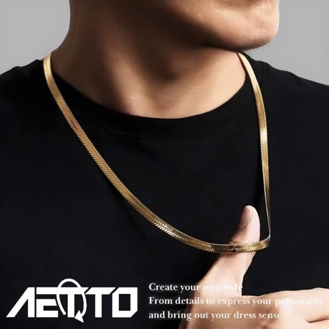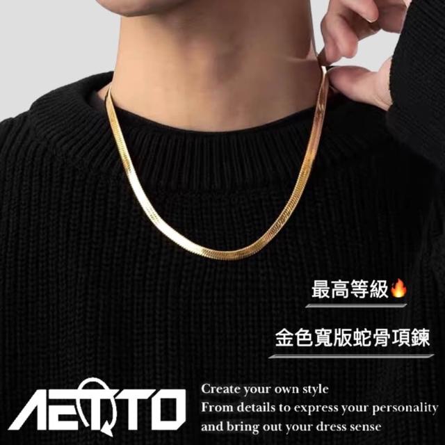 𝑨𝑬𝑻𝑻𝑶 金色寬版蛇骨項鍊 精緻做工 個性 醫療鋼 蛇骨鍊 刀片鍊 男女可戴 蛇骨項鍊 男生項鍊 女生項鍊