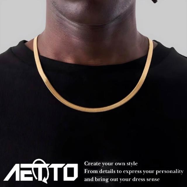 𝑨𝑬𝑻𝑻𝑶 金色寬版蛇骨項鍊 精緻做工 個性 醫療鋼 蛇骨鍊 刀片鍊 男女可戴 蛇骨項鍊 男生項鍊 女生項鍊