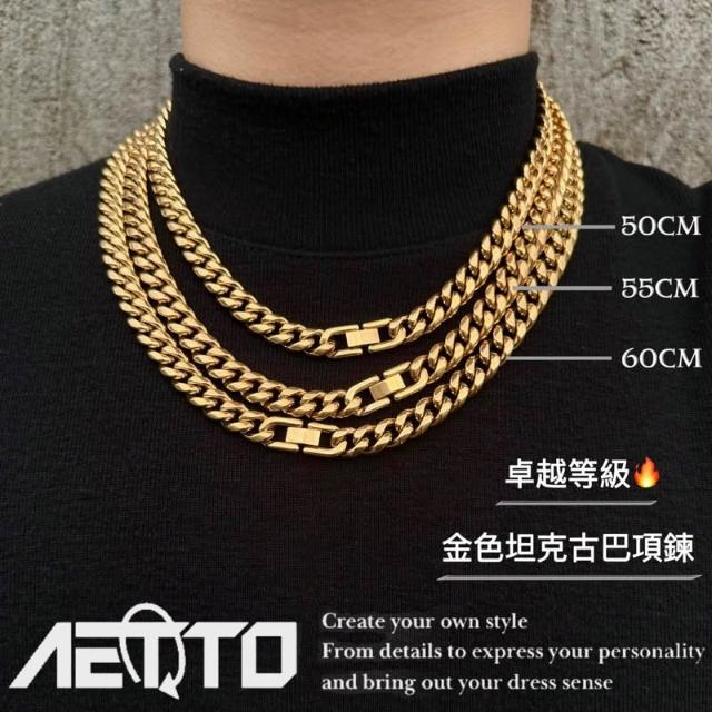 𝑨𝑬𝑻𝑻𝑶 金色坦克古巴項鍊 卓越等級 精緻 重磅 金項鍊 古巴項鍊 鈦鋼項鍊 古巴鍊 男生項鍊 女生項鍊 男生飾品