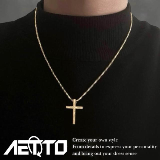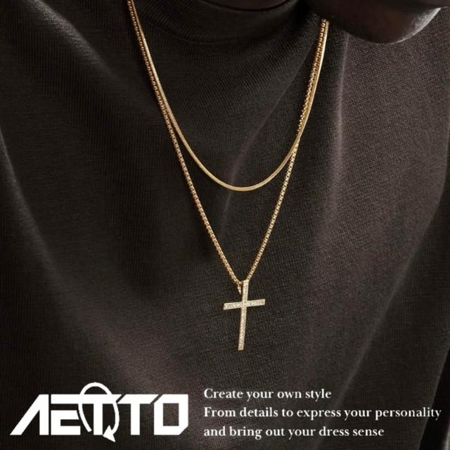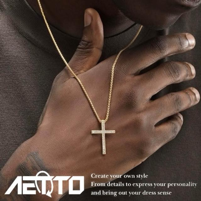 𝑨𝑬𝑻𝑻𝑶 金色滿鑽 十字架項鍊 卓越等級 自製款 嘻哈 金項鍊 金色項鍊 滿鑽項鍊 項鍊 水鑽項鍊 男生項鍊 女生項鍊