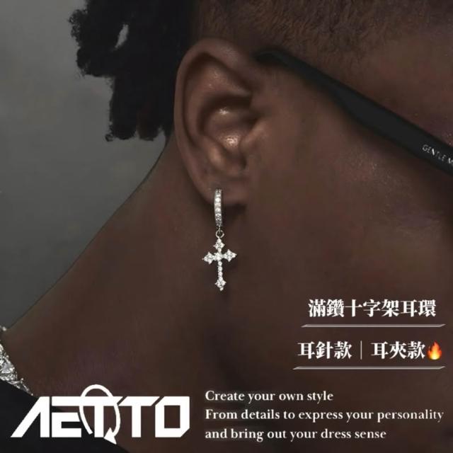 𝑨𝑬𝑻𝑻𝑶 滿鑽 十字架耳環 頂級 一對 精緻閃鑽 耳環 耳針 無耳洞 耳夾 耳釘 滿鑽耳環 男耳環 女耳環 鑽石耳環