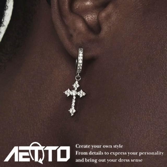 𝑨𝑬𝑻𝑻𝑶 滿鑽 十字架耳環 頂級 一對 精緻閃鑽 耳環 耳針 無耳洞 耳夾 耳釘 滿鑽耳環 男耳環 女耳環 鑽石耳環