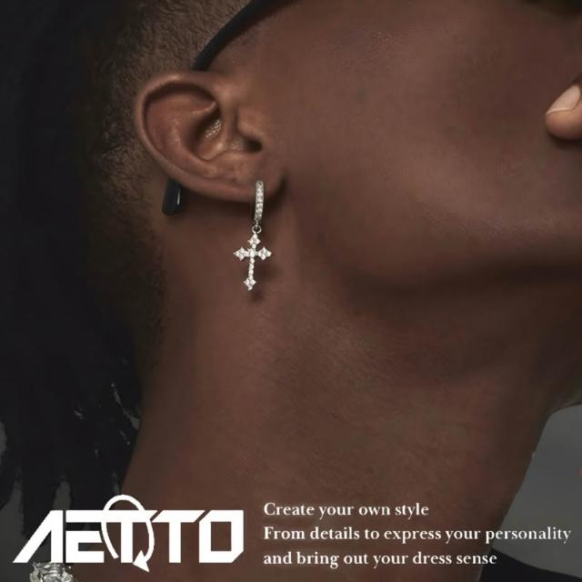 𝑨𝑬𝑻𝑻𝑶 滿鑽 十字架耳環 頂級 一對 精緻閃鑽 耳環 耳針 無耳洞 耳夾 耳釘 滿鑽耳環 男耳環 女耳環 鑽石耳環