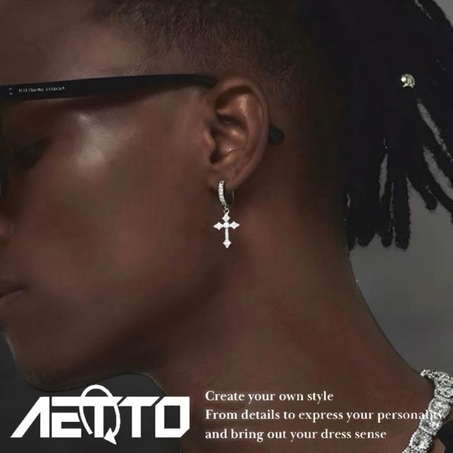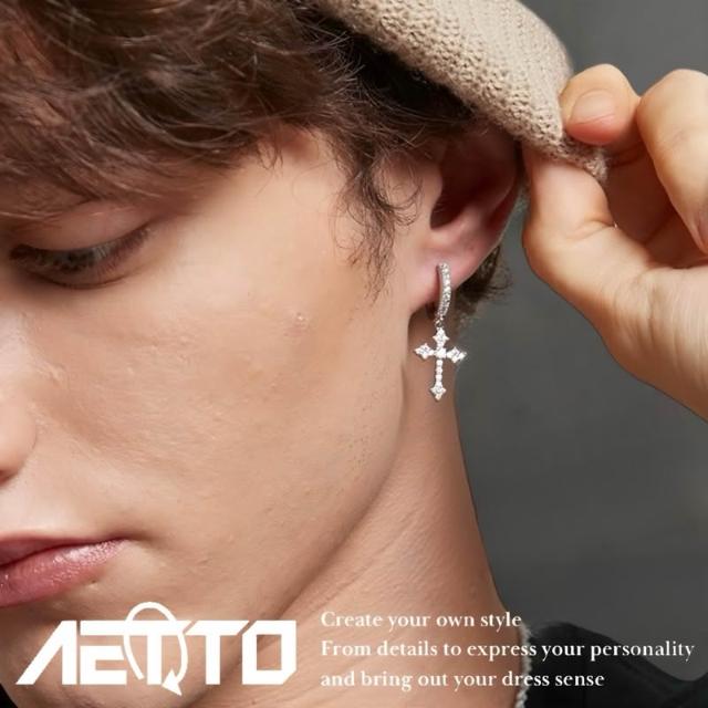 𝑨𝑬𝑻𝑻𝑶 滿鑽 十字架耳環 頂級 一對 精緻閃鑽 耳環 耳針 無耳洞 耳夾 耳釘 滿鑽耳環 男耳環 女耳環 鑽石耳環
