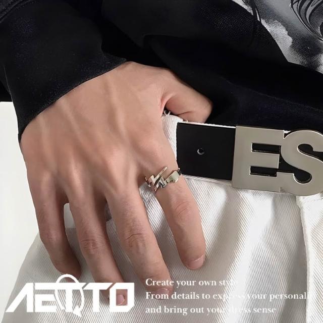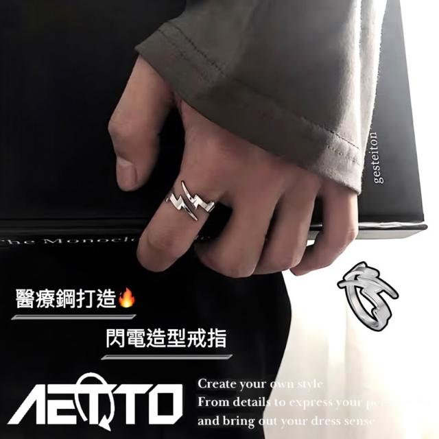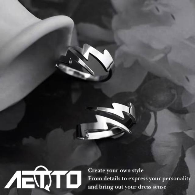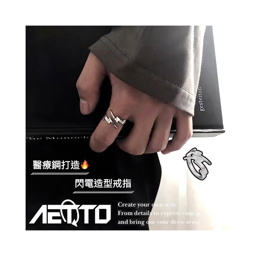 𝑨𝑬𝑻𝑻𝑶 閃電造型戒指 設計款 簡約 高光澤 醫療鋼 開口可調節 男女可戴 男生戒指 女生戒指 鈦鋼戒指 戒