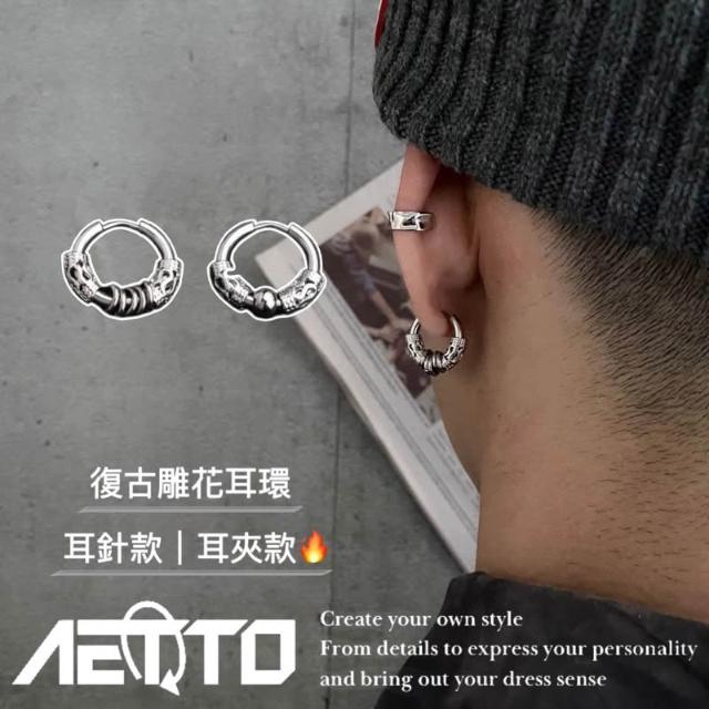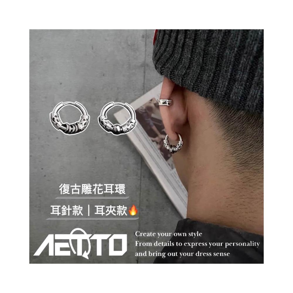 𝑨𝑬𝑻𝑻𝑶 復古雕花耳環 精緻做工 個性 醫療鋼 耳針款 無耳洞耳夾 男女可戴 耳環 耳夾 耳骨夾 男生耳環
