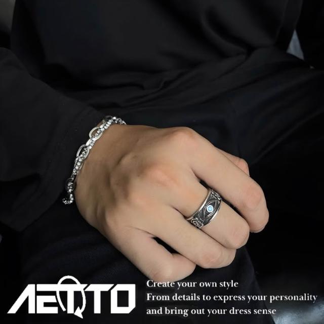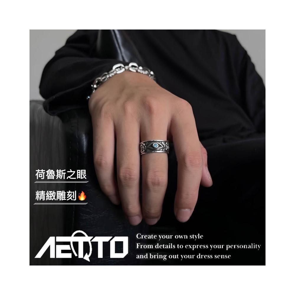 𝑨𝑬𝑻𝑻𝑶 荷魯斯之眼戒指 設計款 開口可調節 精緻雕刻 雕花 個性風 925銀 復古戒指 男生戒指 男生飾品
