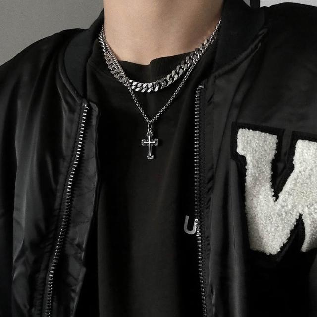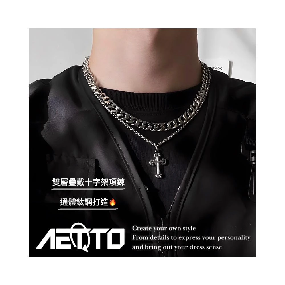 𝑨𝑬𝑻𝑻𝑶 雙層十字架項鍊 古巴項鍊 鈦鋼項鍊 十字架項鍊 古巴鍊 街頭 嘻哈 韓系項鍊 男女可戴 男生項鍊
