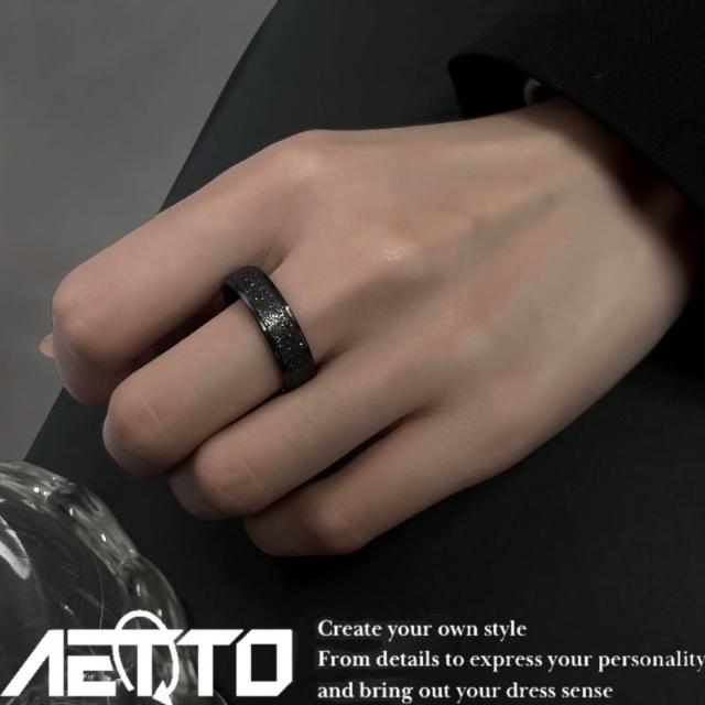 𝑨𝑬𝑻𝑻𝑶 磨砂質感戒指 噴砂工藝 黑銀兩色 簡約百搭 戒指 鈦鋼戒指 鋼戒指 對戒 男生戒指 女生戒指 情侶戒指