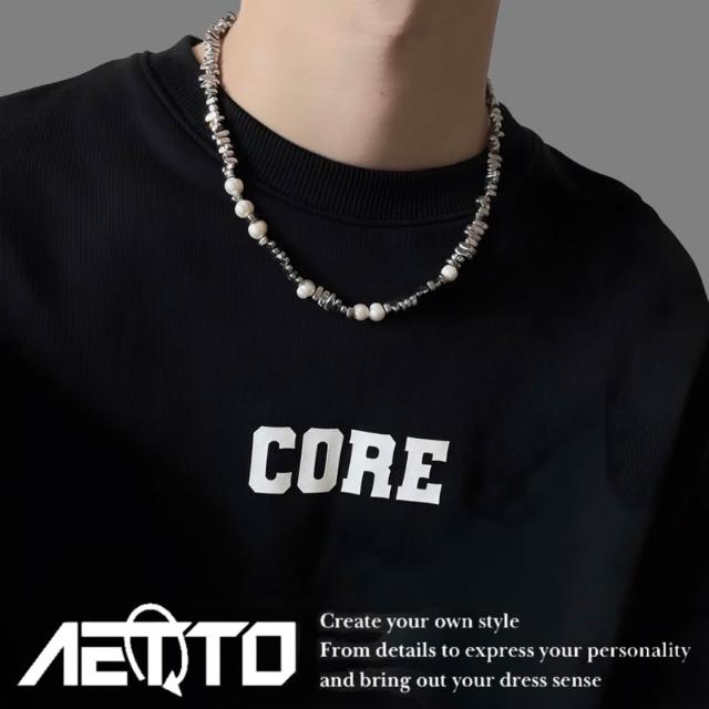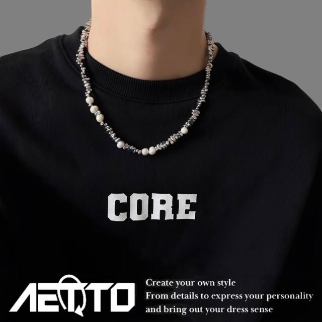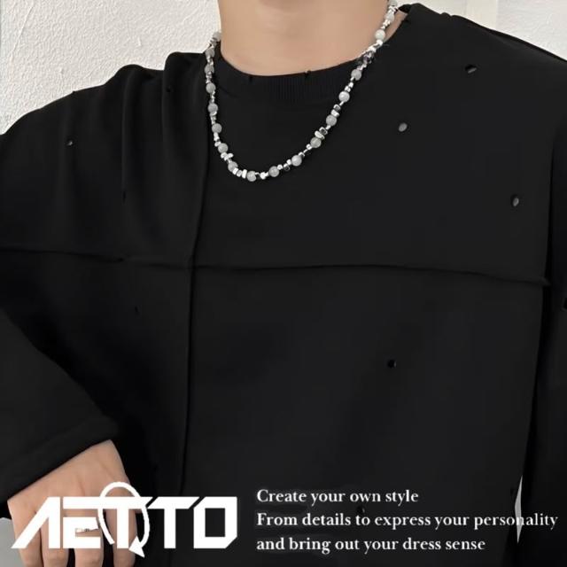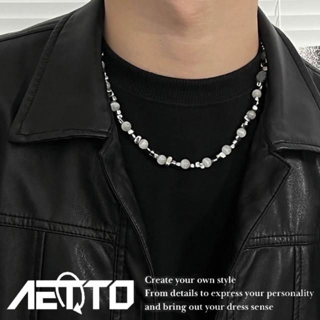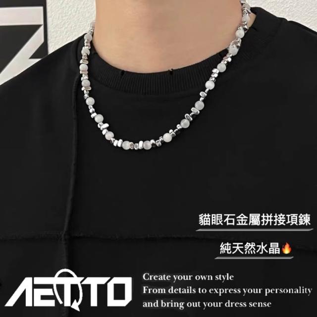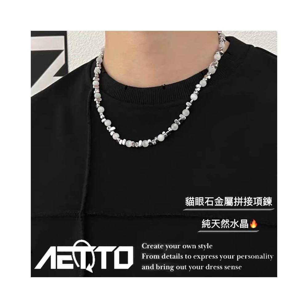 𝑨𝑬𝑻𝑻𝑶 貓眼石金屬項鍊 碎銀 高級感 天然水晶 淨化石 磁場 串珠 項鍊 鈦鋼項鍊 男生項鍊 女生項鍊 男生飾品
