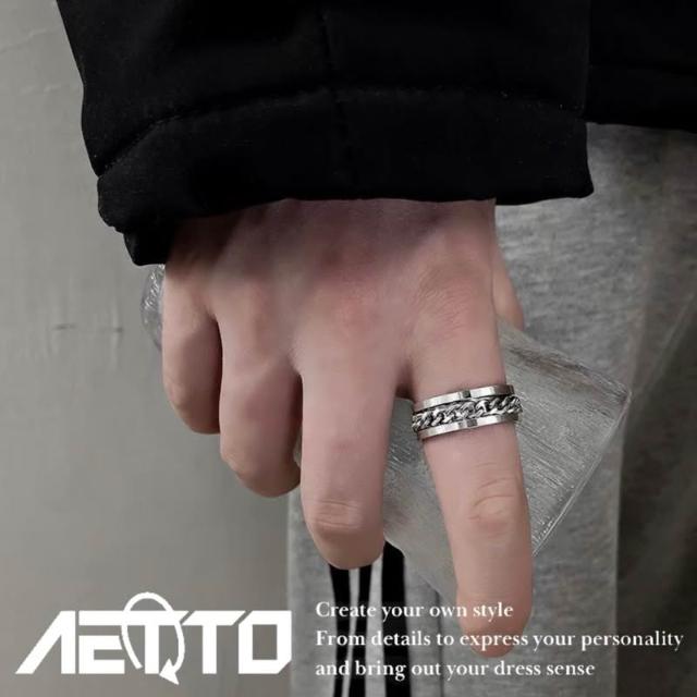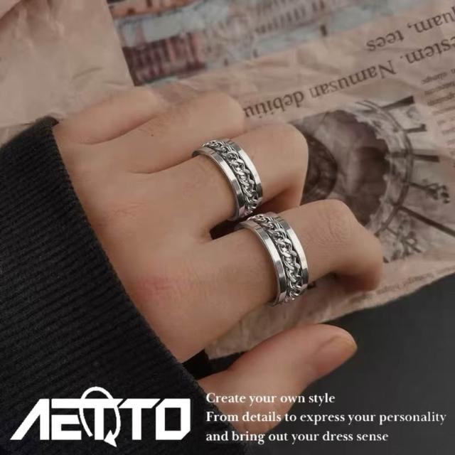 𝑨𝑬𝑻𝑻𝑶 古巴鏈條戒指 可轉動 鈦鋼戒指 韓系戒指 男生戒指戒 女生戒指戒 情侶戒指 男生飾品 尾戒