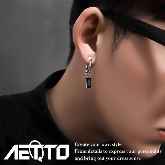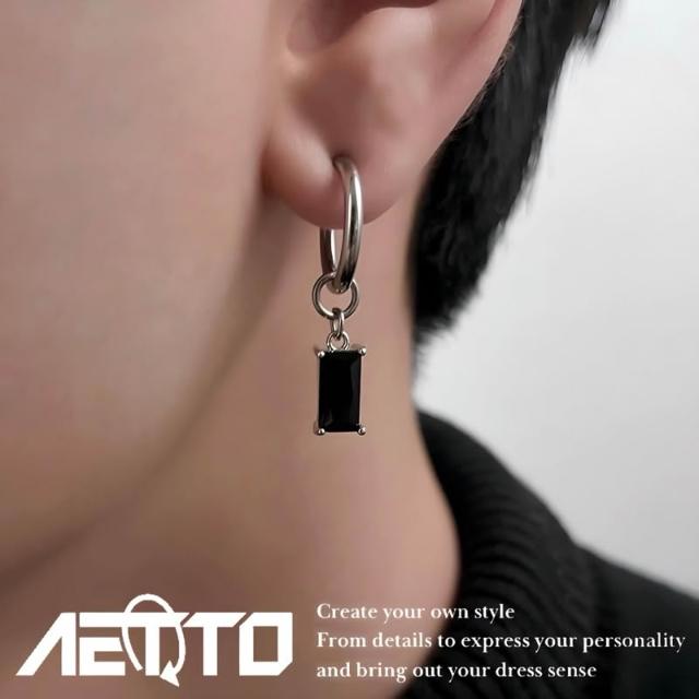 𝑨𝑬𝑻𝑻𝑶 黑鑽吊墜耳環 高級感 簡約 百搭 耳環 耳針 無耳洞 耳夾 耳骨夾 耳釘 鈦鋼耳環 男生耳環 女生耳環 耳飾