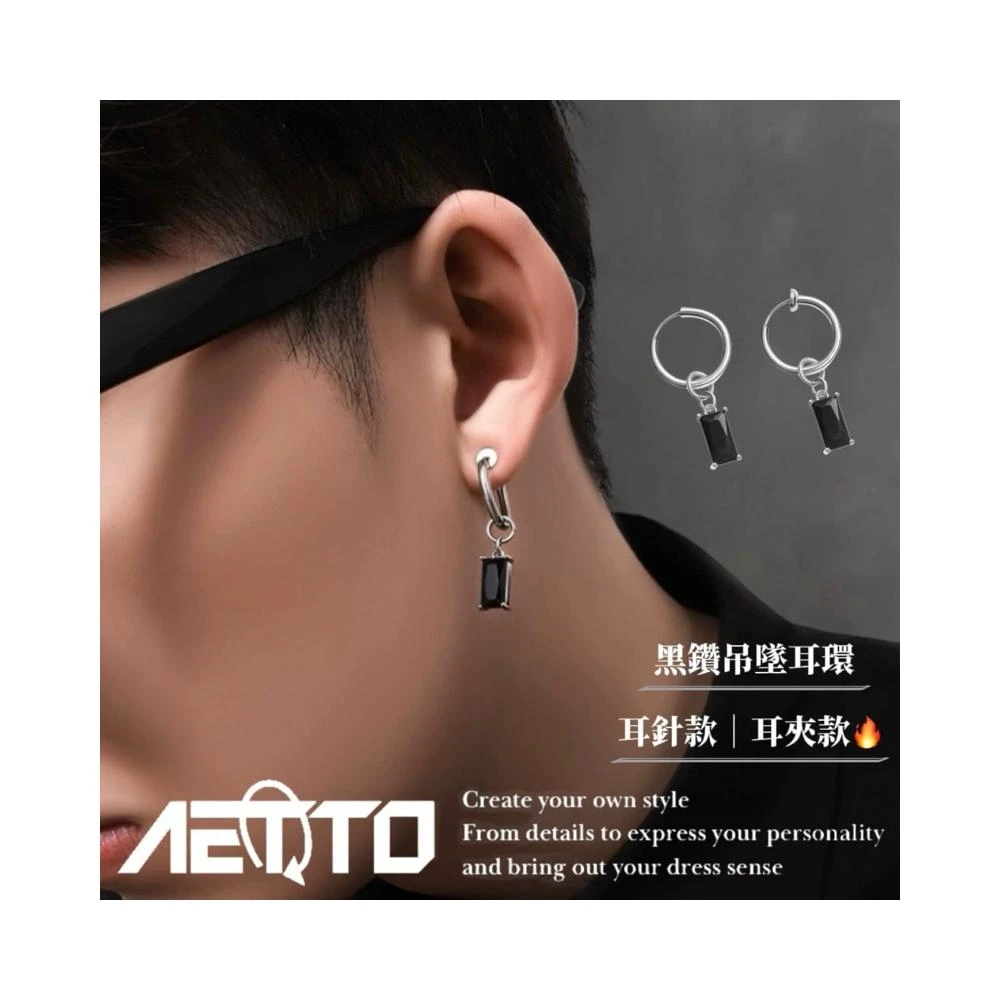 𝑨𝑬𝑻𝑻𝑶 黑鑽吊墜耳環 高級感 簡約 百搭 耳環 耳針 無耳洞 耳夾 耳骨夾 耳釘 鈦鋼耳環 男生耳環 女生耳環 耳飾
