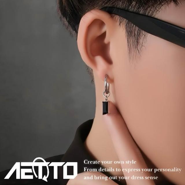 𝑨𝑬𝑻𝑻𝑶 黑鑽吊墜耳環 高級感 簡約 百搭 耳環 耳針 無耳洞 耳夾 耳骨夾 耳釘 鈦鋼耳環 男生耳環 女生耳環 耳飾