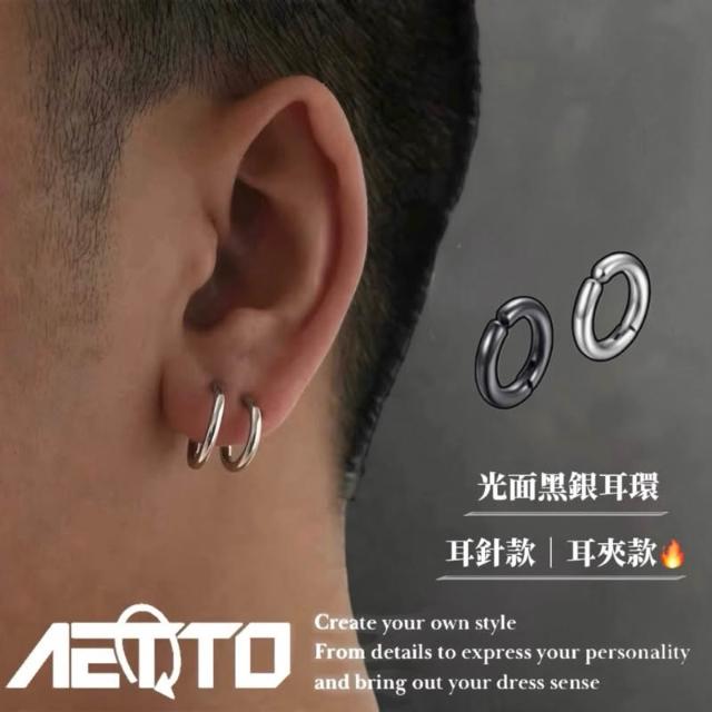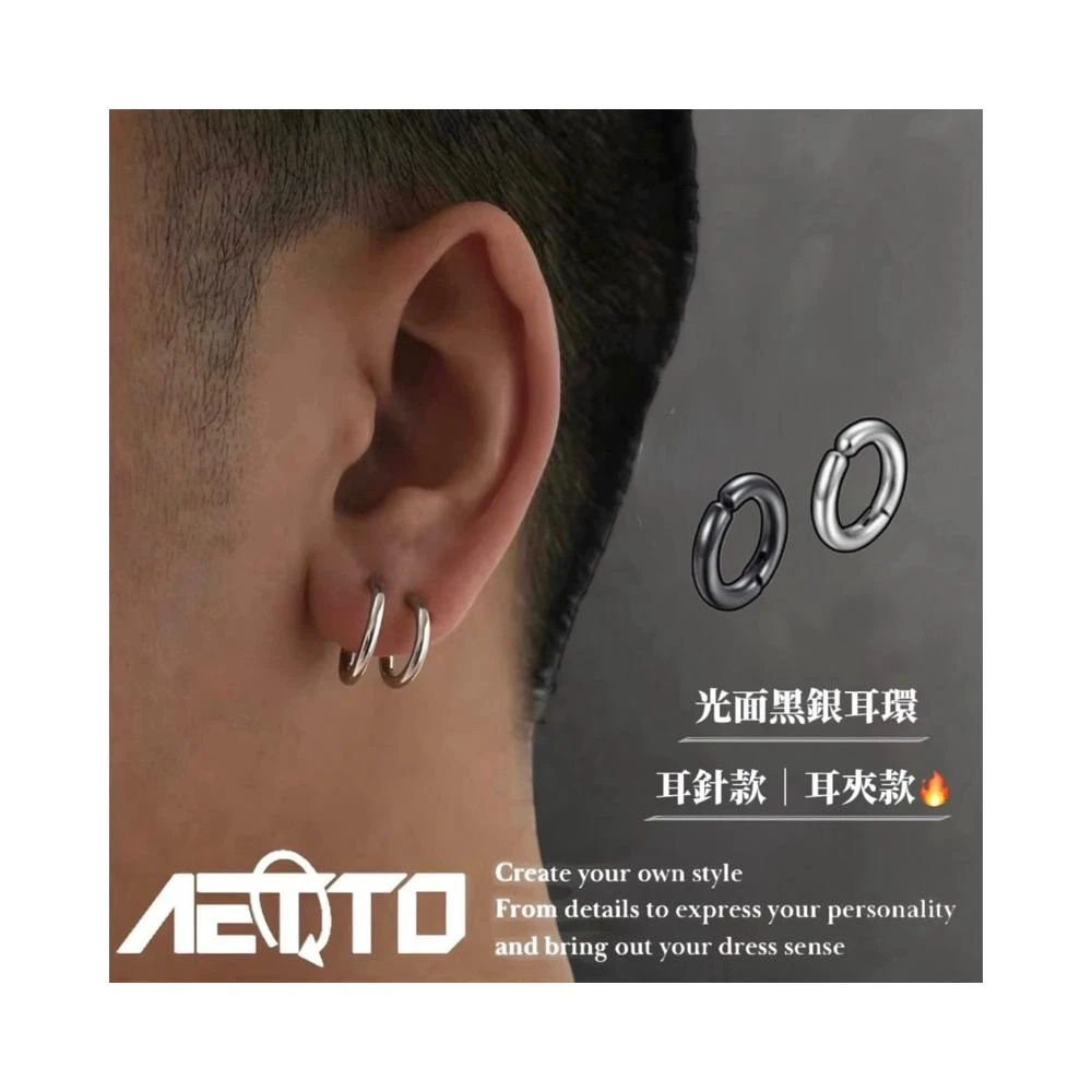 𝑨𝑬𝑻𝑻𝑶 光面簡約耳環 黑銀兩色 新款 醫療鋼 耳環 耳針 無耳洞可戴 耳夾 耳骨夾 男生耳環 女生耳環 耳飾