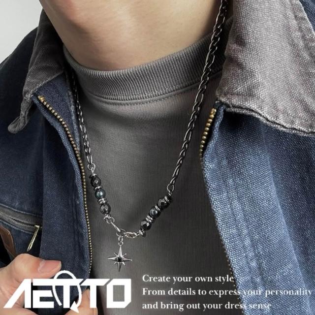 𝑨𝑬𝑻𝑻𝑶 暗星幻影項鍊 黑曜石 高級感 星芒項鍊 簡約項鍊 項鍊 鈦鋼項鍊 鋼項鍊 男生項鍊 女生項鍊 飾品男 鎖骨鏈