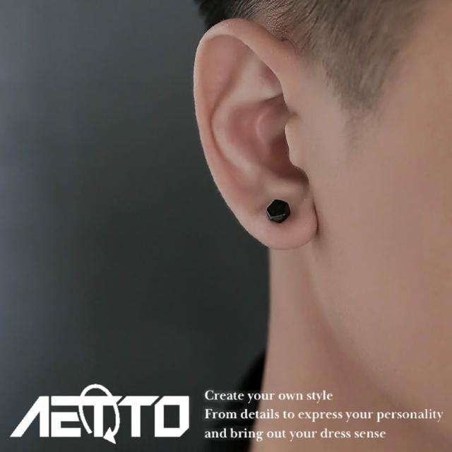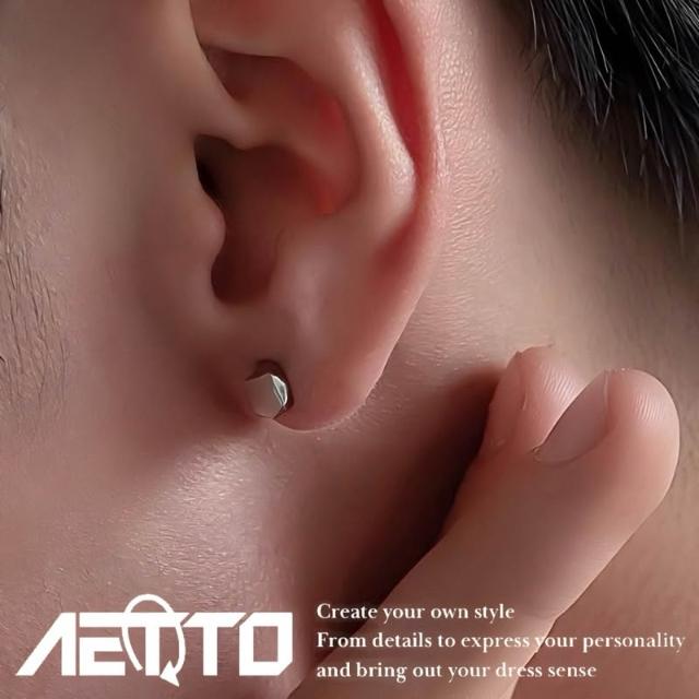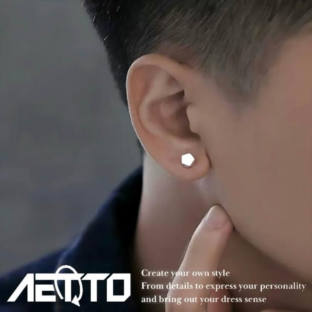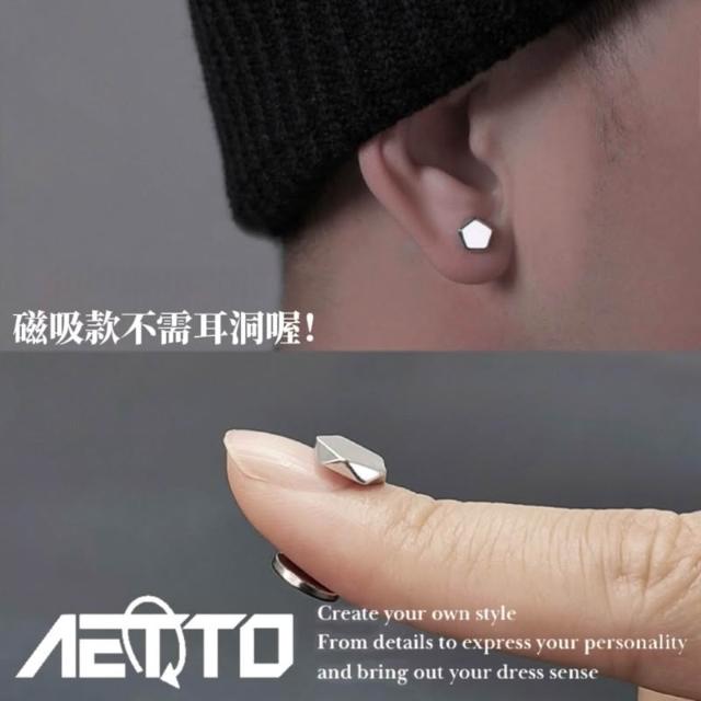 𝑨𝑬𝑻𝑻𝑶 五邊稜面耳環 黑銀兩色 S925銀 耳環 耳針 無耳洞可戴 磁吸款 耳夾 耳骨夾 男生耳環 女生耳環 耳飾