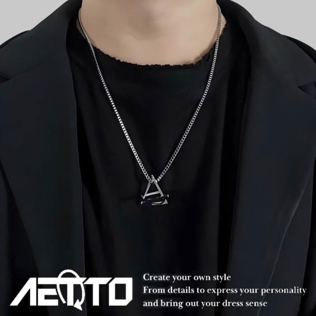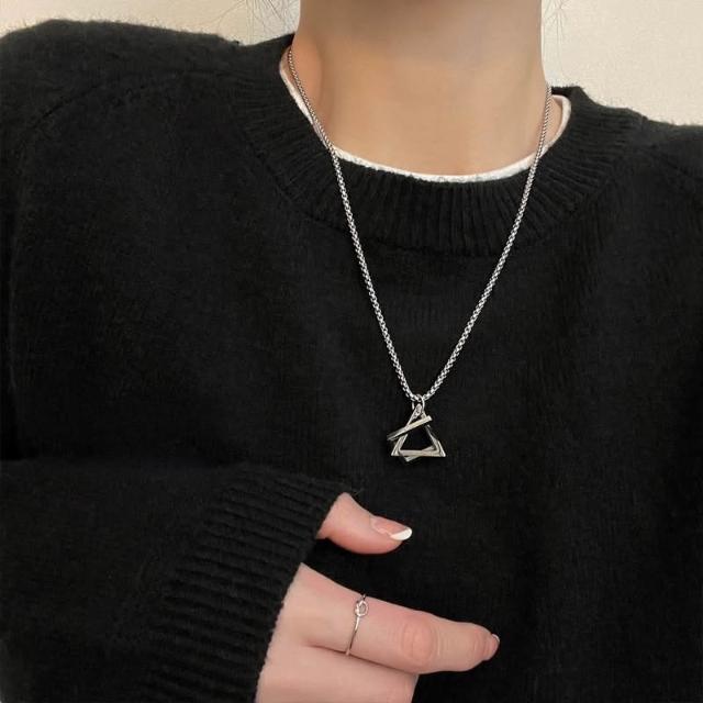 𝑨𝑬𝑻𝑻𝑶 幾何三角形方形項鍊 設計款 簡約百搭 幾何項鍊 鈦鋼項鍊 韓系 男女可戴 男生項鍊 女生項鍊 項鍊