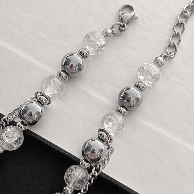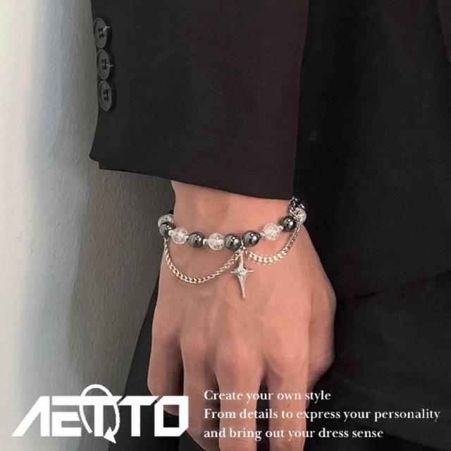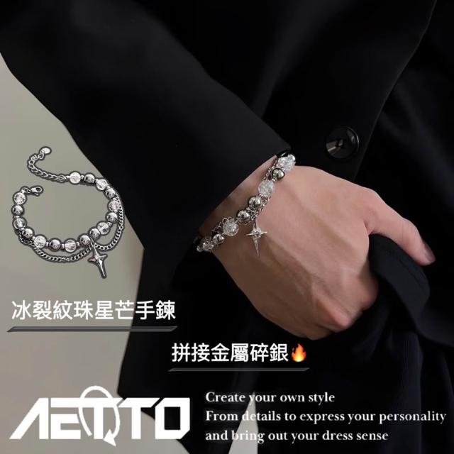 𝑨𝑬𝑻𝑻𝑶 冰裂紋珠星芒手鍊 精湛設計 裂紋珠 雙層疊戴 碎銀 星芒 珍珠手鍊 男女可戴 鈦鋼手鍊 男生手鍊