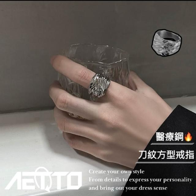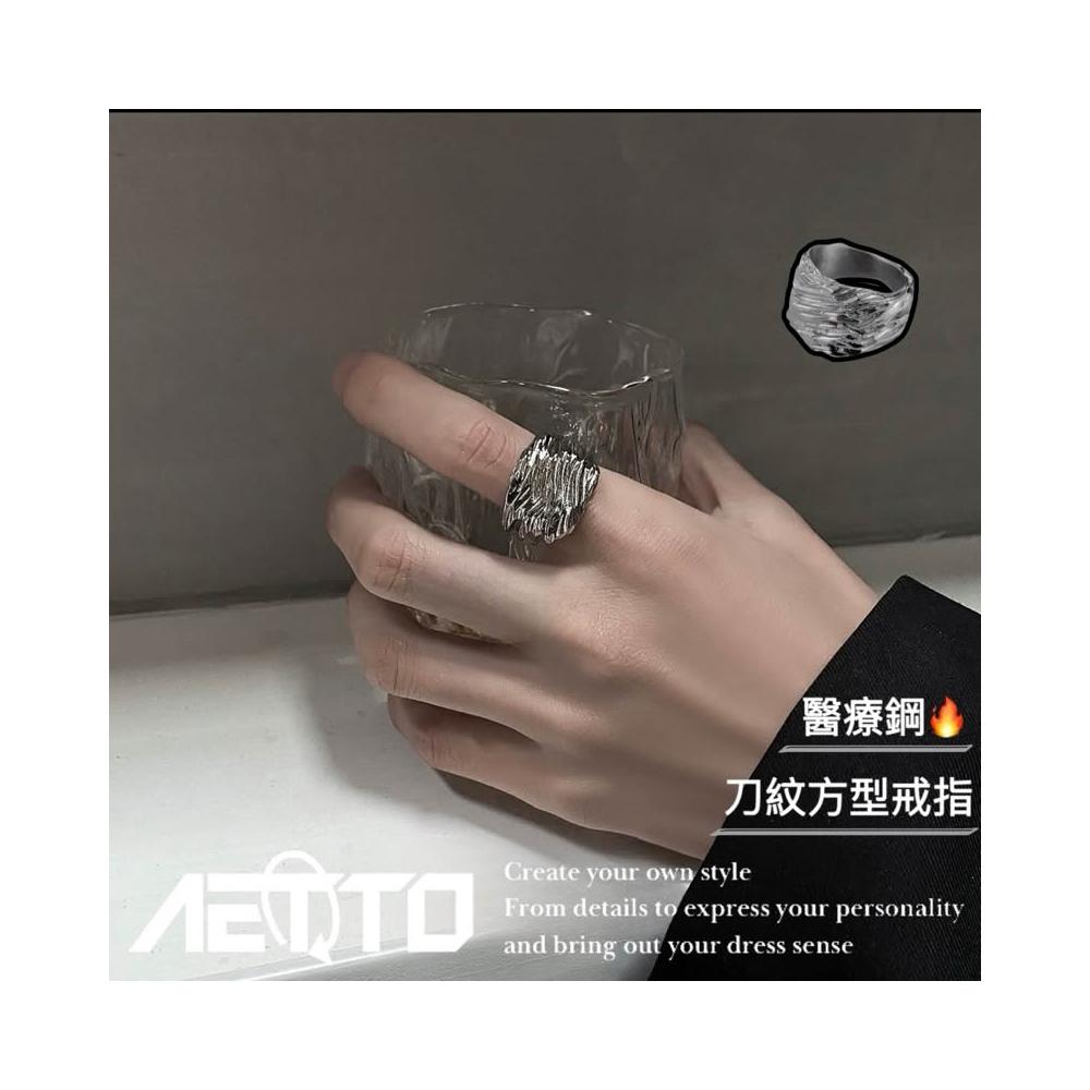 𝑨𝑬𝑻𝑻𝑶 刀紋方型戒指 醫療鋼 重磅 個性風 簡約百搭 男女可戴 鋼戒指 男生戒指 女生戒指 戒指 鈦鋼戒指