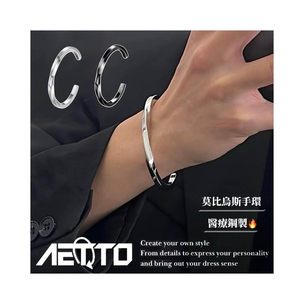 𝑨𝑬𝑻𝑻𝑶 莫比烏斯手環 醫療鋼 黑銀兩色 高級質感 素面 手環 手鐲 鈦鋼手環 鋼手環 手鍊 男生手環 女生手環 飾品