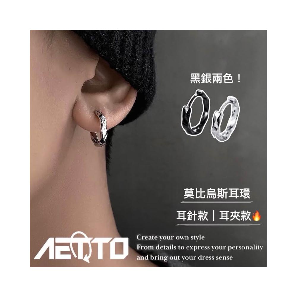 𝑨𝑬𝑻𝑻𝑶 莫比烏斯耳環 精緻做工 醫療鋼 黑銀兩色 耳環 耳針 無耳洞 耳夾 鈦鋼耳環 男生耳環 女生耳環 耳飾
