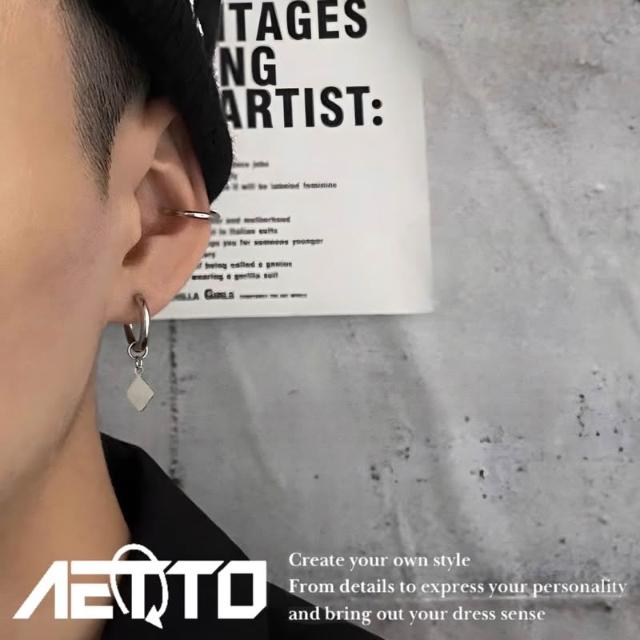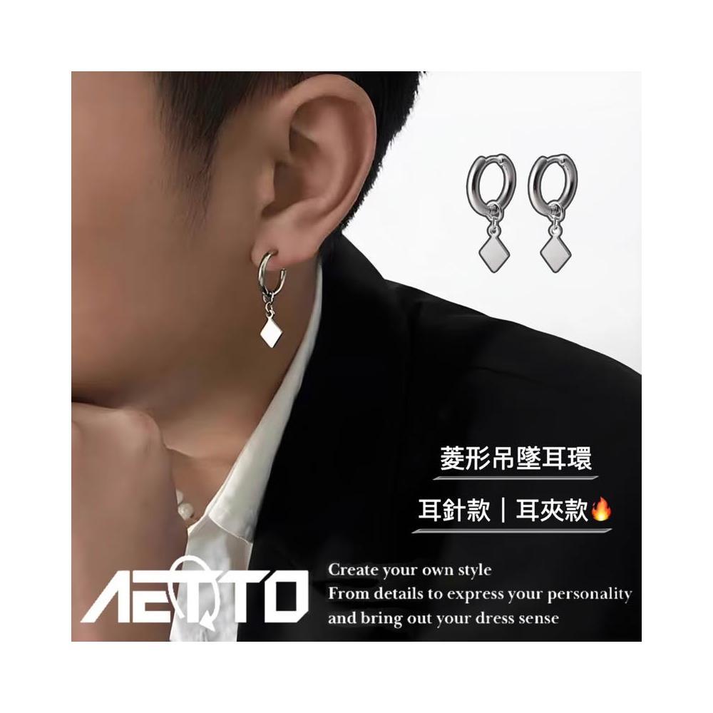 𝑨𝑬𝑻𝑻𝑶 菱形吊墜耳環 設計款 醫療鋼 簡約風 耳針款 無耳洞耳夾 男女可戴 耳環 耳夾 耳釘 男生耳環 耳針