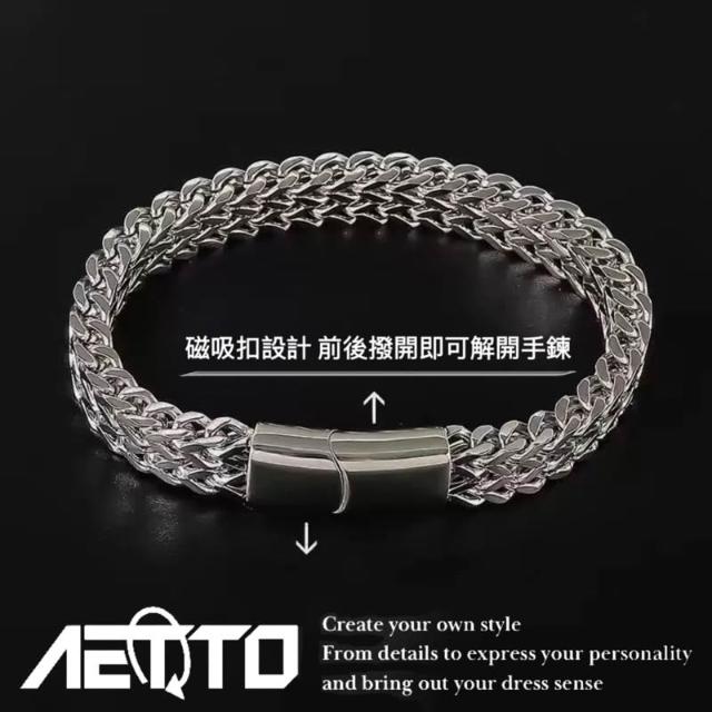 𝑨𝑬𝑻𝑻𝑶 雙排龍骨手鍊 磁吸扣 高規等級 個性款 龍骨手鍊 鈦鋼手鍊 鋼手鍊 男生手鍊 男生飾品 男手鍊