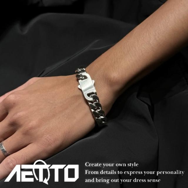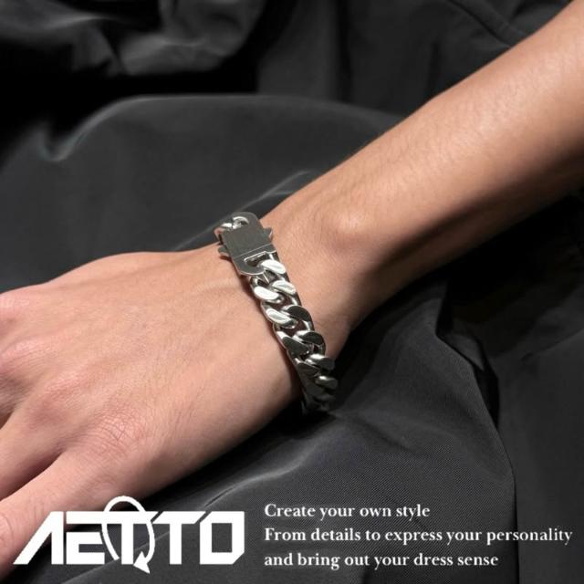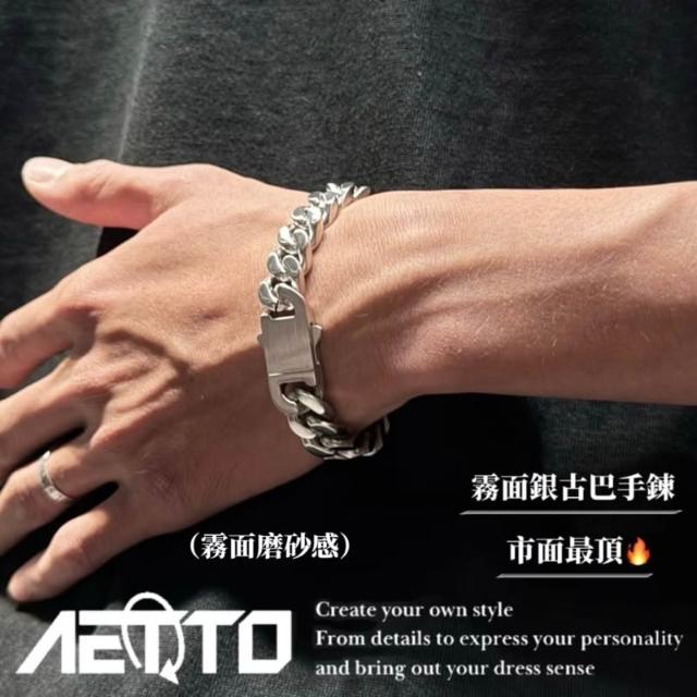 𝑨𝑬𝑻𝑻𝑶 霧面銀古巴手鍊 重磅 11MM 訂製款 扣式 粗款 醫療鋼 手鍊 古巴手鍊 古巴鍊 鈦鋼手鍊 男生手鍊 飾品