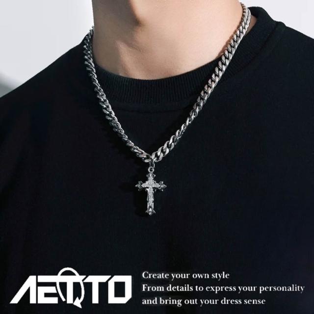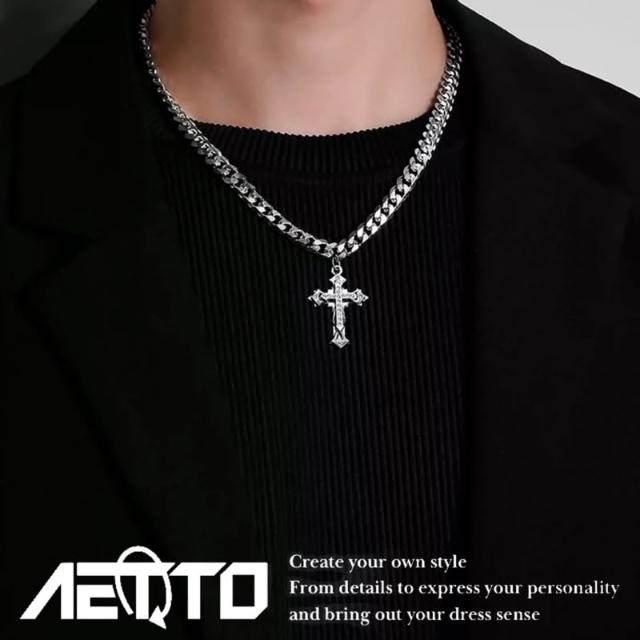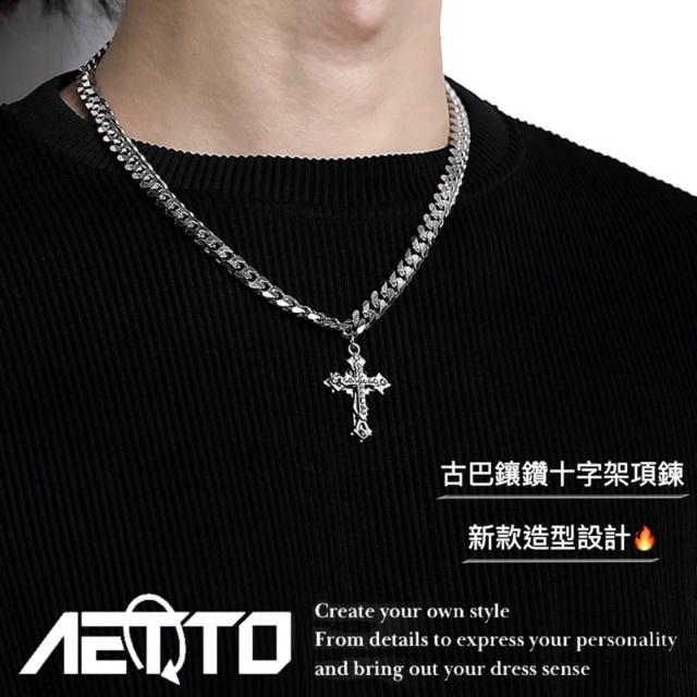 𝑨𝑬𝑻𝑻𝑶 古巴鑲鑽十字架項鍊 滿鑽項鍊 嘻哈項鍊 十字架項鍊 古巴項鍊 鈦鋼項鍊 鋼項鍊 男生項鍊 男生飾品