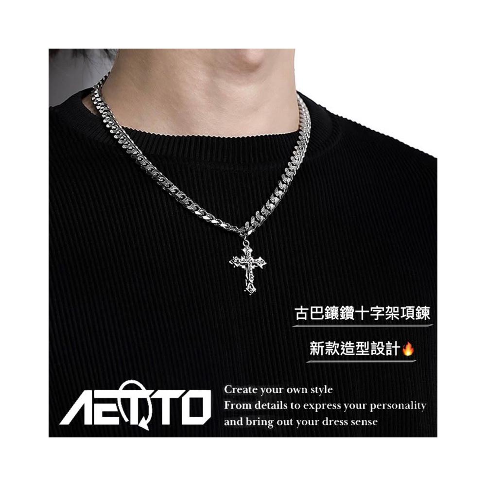 𝑨𝑬𝑻𝑻𝑶 古巴鑲鑽十字架項鍊 滿鑽項鍊 嘻哈項鍊 十字架項鍊 古巴項鍊 鈦鋼項鍊 鋼項鍊 男生項鍊 男生飾品