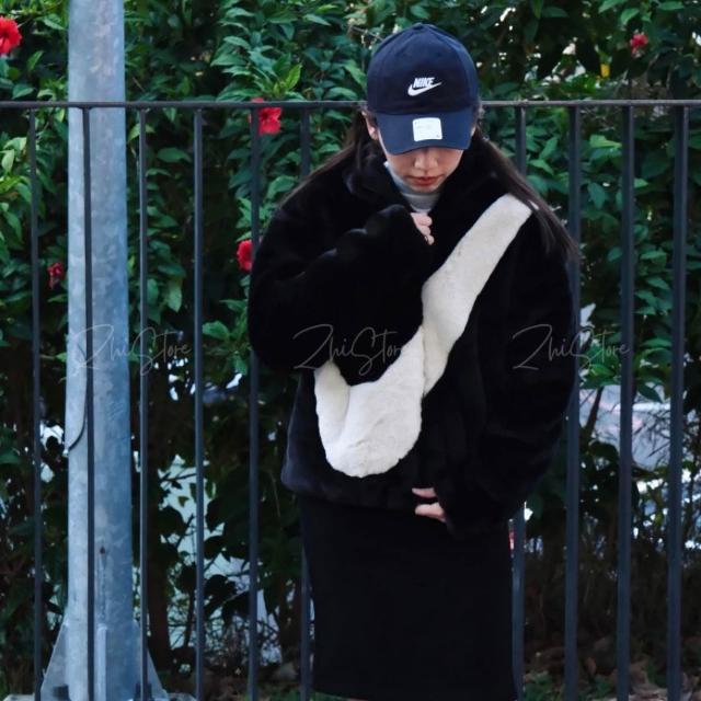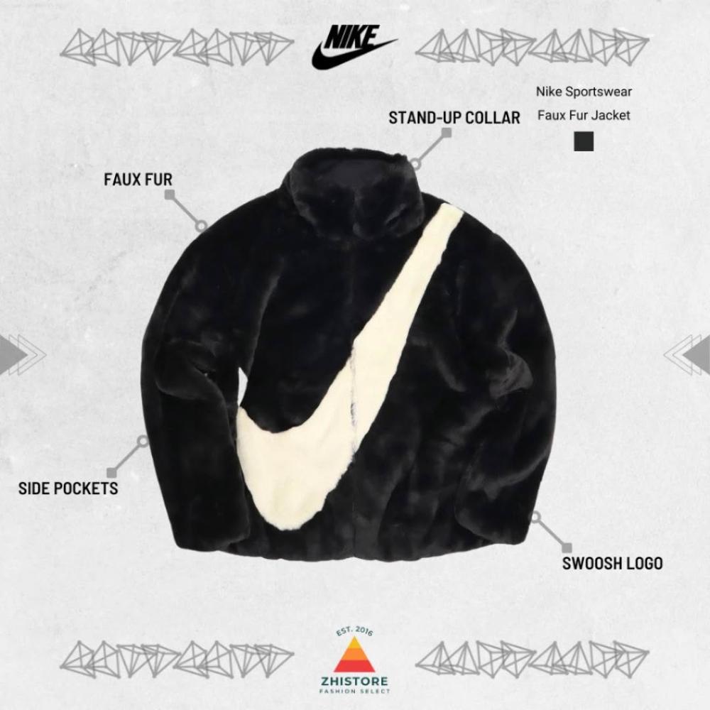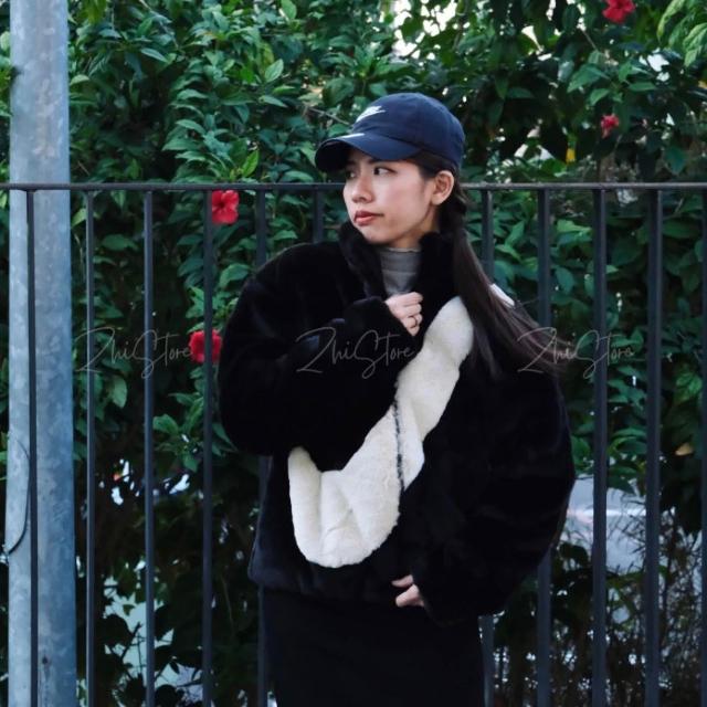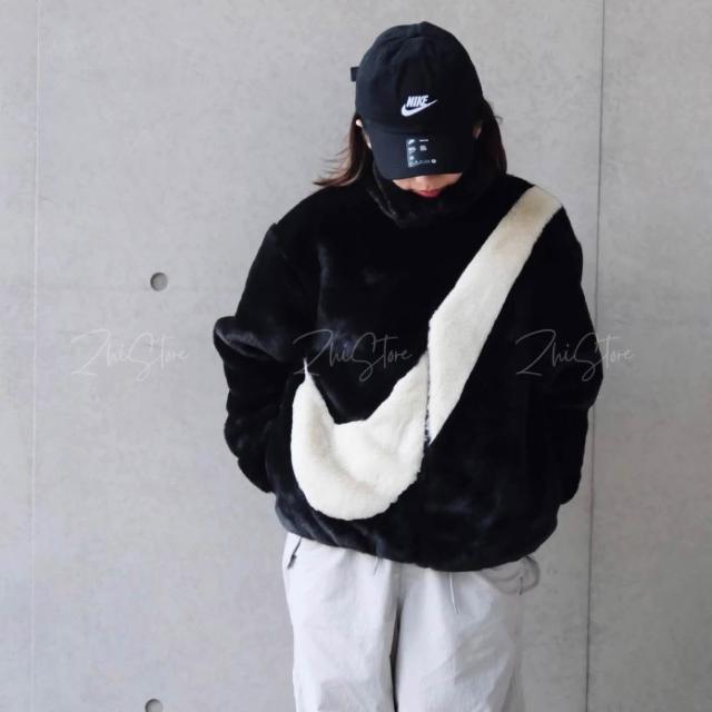 NIKE 耐吉Nike NSW 仿兔毛大勾外套 絨毛外套 毛毛外套 立領外套 黑色 DO3792-010