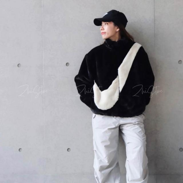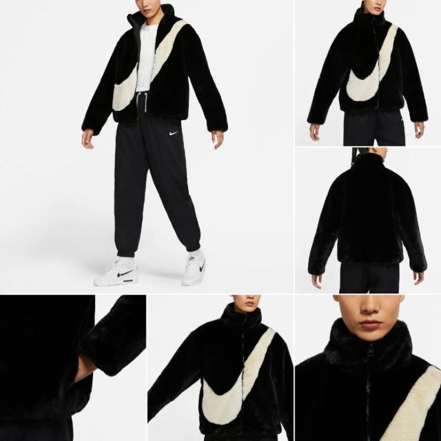 NIKE 耐吉Nike NSW 仿兔毛大勾外套 絨毛外套 毛毛外套 立領外套 黑色 DO3792-010