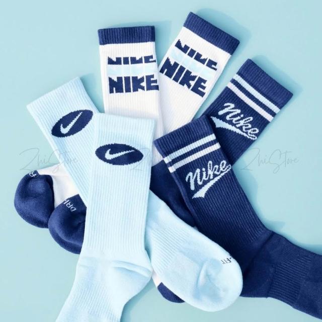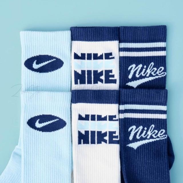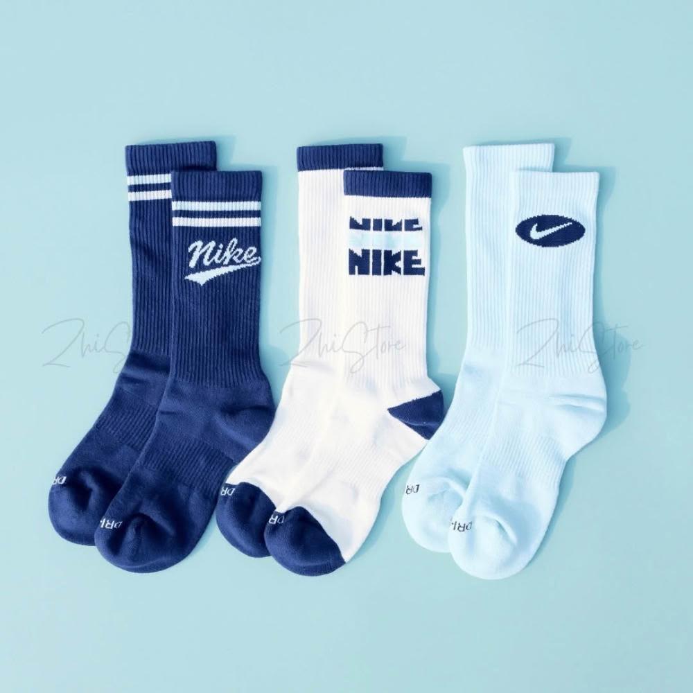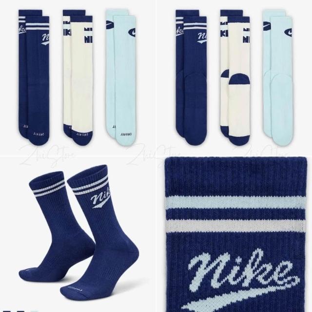NIKE 耐吉Nike Everyday Plus 3雙一組 美式 毛圈布底 休閒長襪 長襪 深藍 奶油白 水藍 HJ9336-902