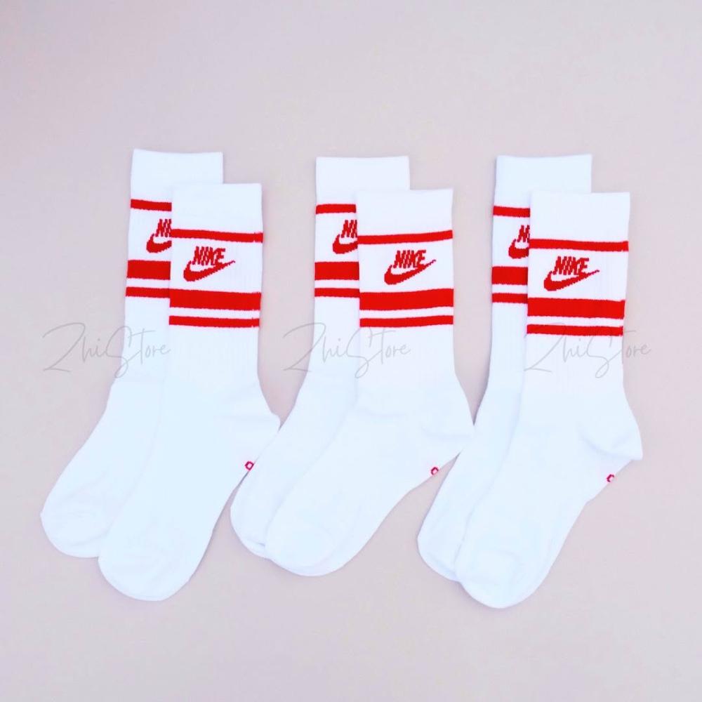 NIKE 耐吉Nike Essential 【3雙一組】 學院風 紅條紋 長襪 白襪 襪子 休閒襪 休閒長襪 DX5089-102