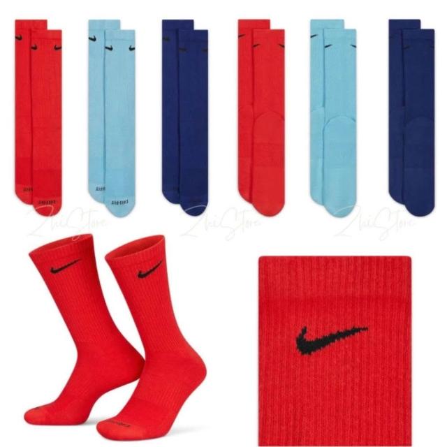 NIKE 耐吉Nike Everyday Plus【3雙一組】薄底 長襪 休閒襪 襪子 深藍色 水藍色 紅色 SX6891-925
