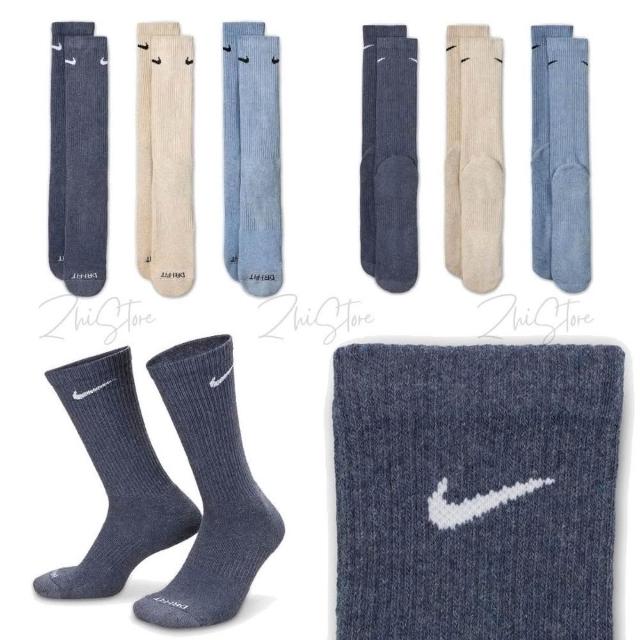 NIKE 耐吉Nike Plus 【3雙一組】 水洗色 休閒 長襪 襪子 休閒襪 藍色 燕麥 深藍 SX6888-901