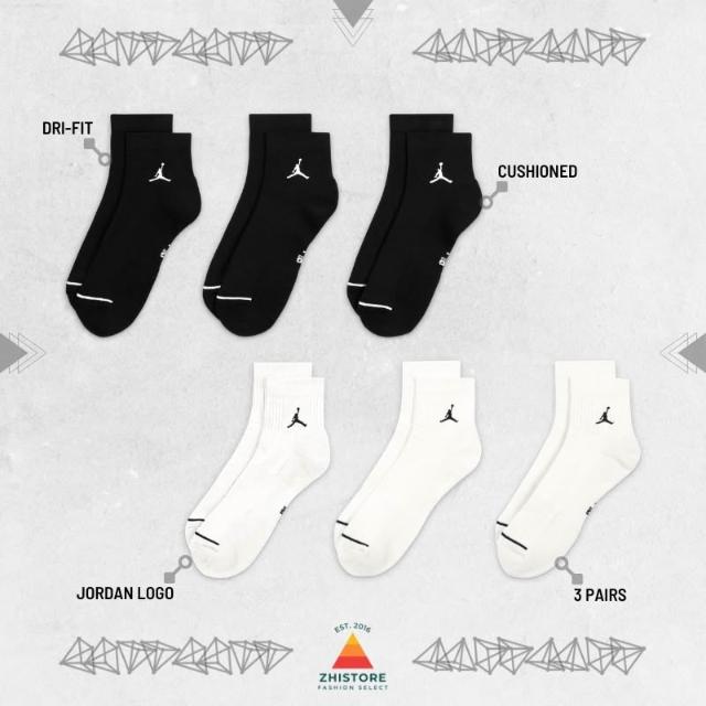 NIKE 耐吉Nike Air Jordan【3雙一組】中筒襪 襪子 黑色 白色 DX9655-010 DX9655-100