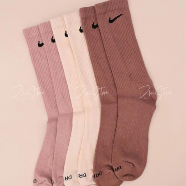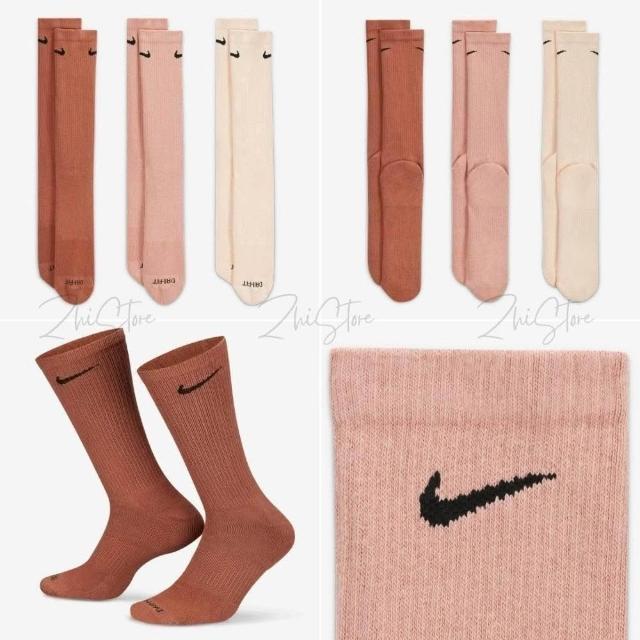 NIKE 耐吉Nike Everyday Plus【3雙一組】薄底 長襪 休閒襪 襪子 焦糖色 乾燥玫瑰 杏仁白 SX6891-914