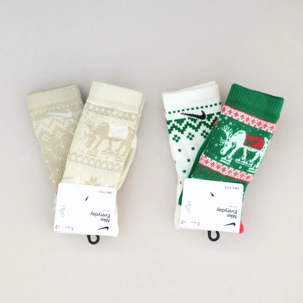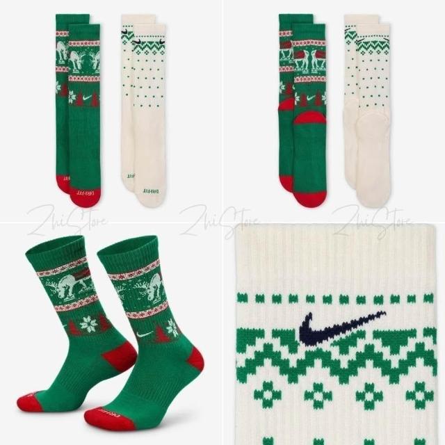 NIKE 耐吉Nike Plus【2雙】奶茶色 綠色 長襪 襪子 女襪 男襪 聖誕節 耶誕節 HV6939-902 901