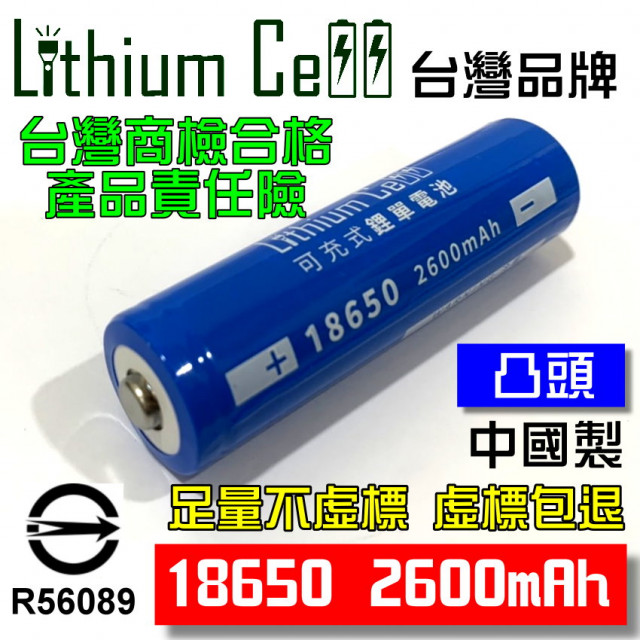 Lithium Cell 台灣品牌 18650 鋰電池 2600mAh 平頭 凸點 充電電池 小風扇電池 手電筒電池 頭燈電池
